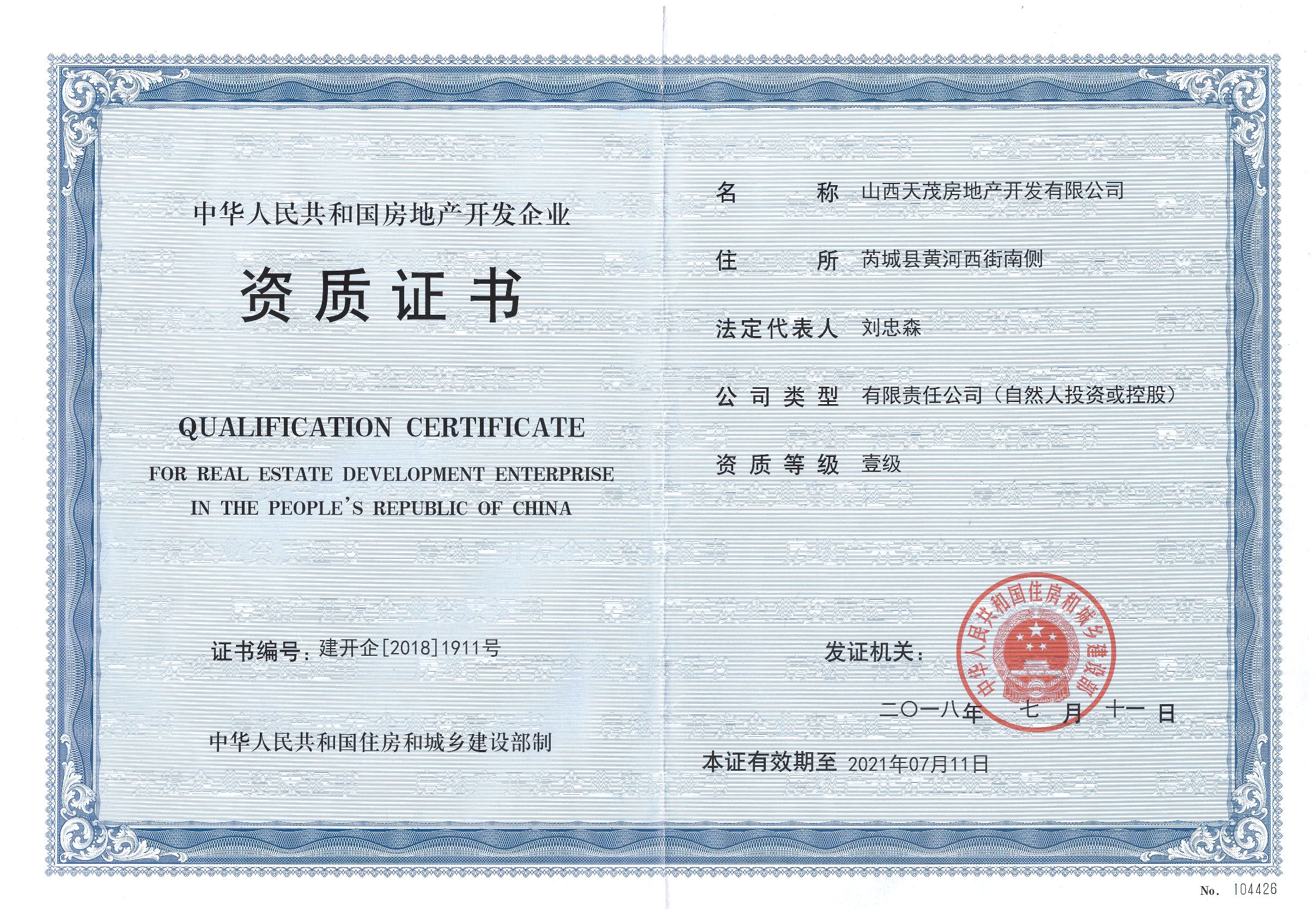 Qualification Certificate