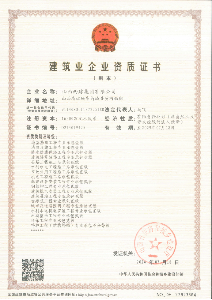 建筑施工總承包壹級資質(zhì)
